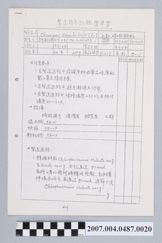 三和喘嗽顆粒製造指示記錄標準書