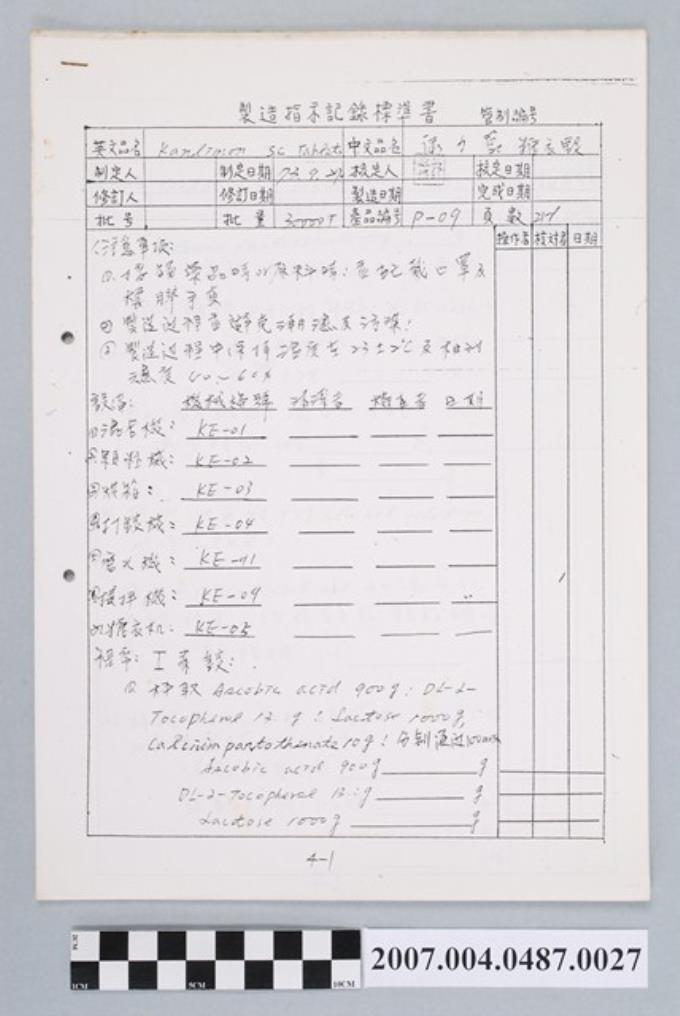 康力蒙糖衣錠製造指示記錄標準書