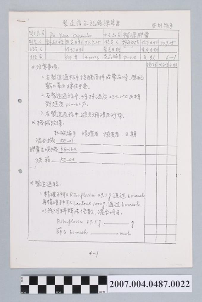補源膠囊製造指示記錄標準書