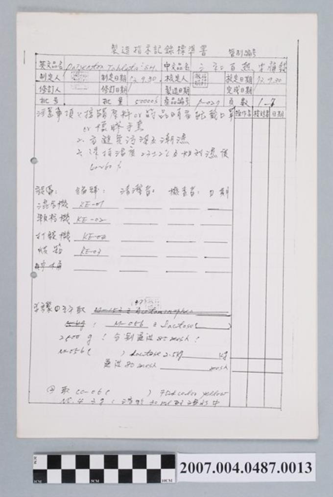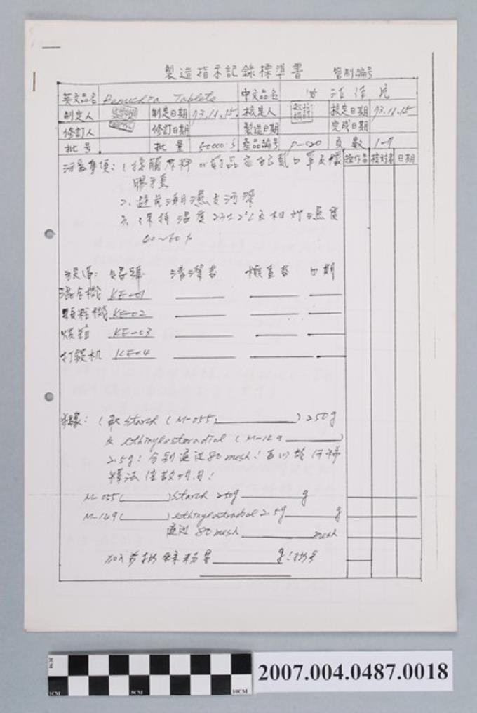 必汝佳片製造指示記錄標準書