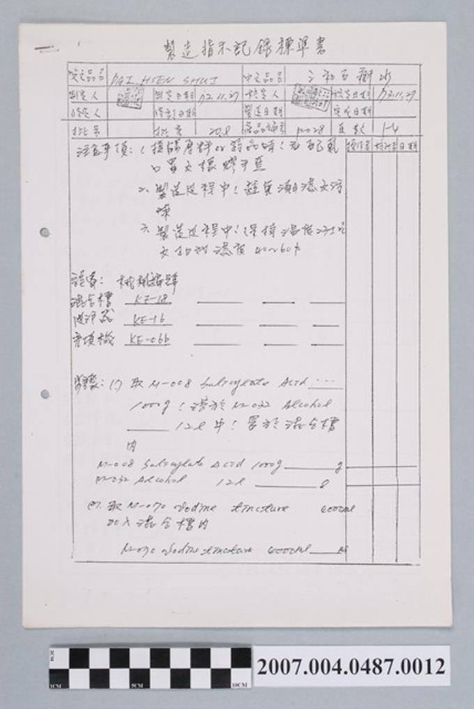 三和百癬水製造指示記錄標準書