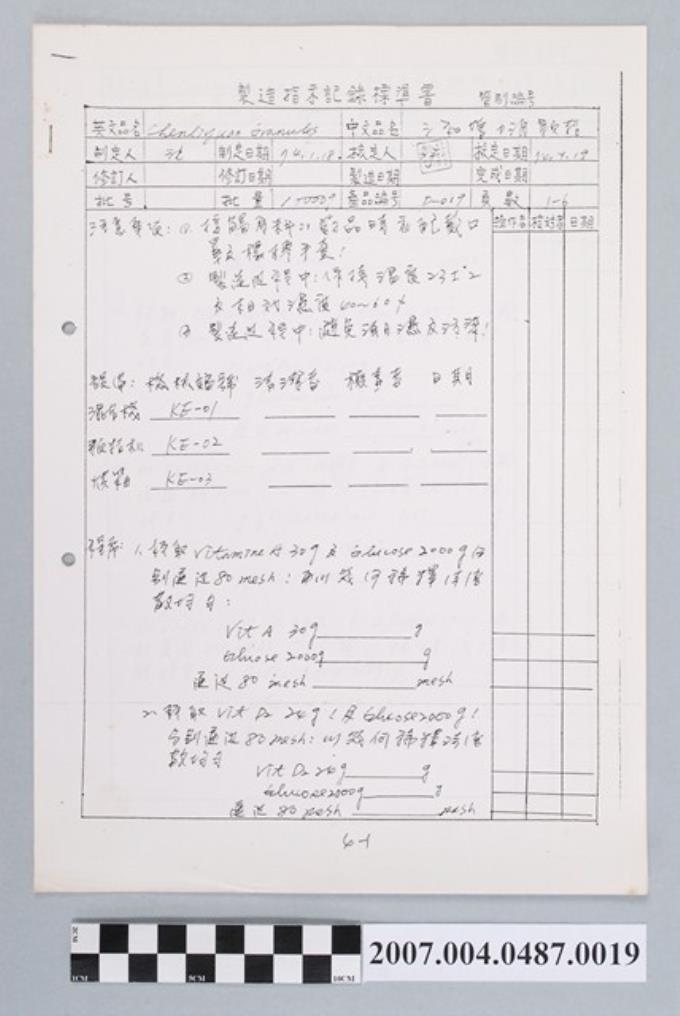 三和增力源顆粒製造指示記錄標準書