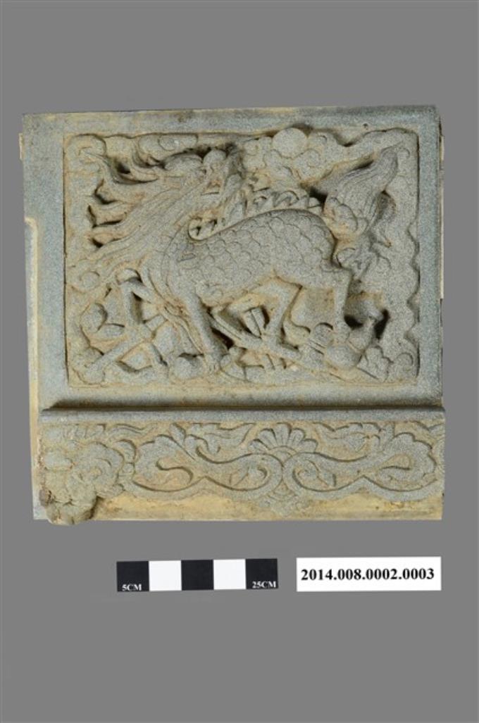 案桌左側石雕板「麒麟」