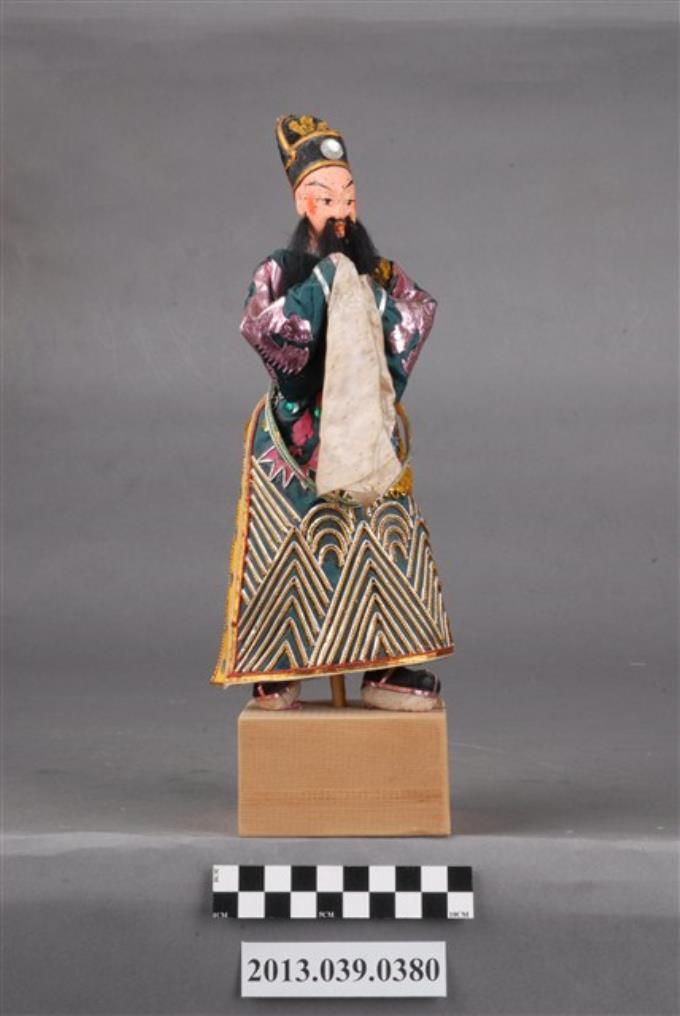 紙糊黑鬚老生靛袍文官人偶