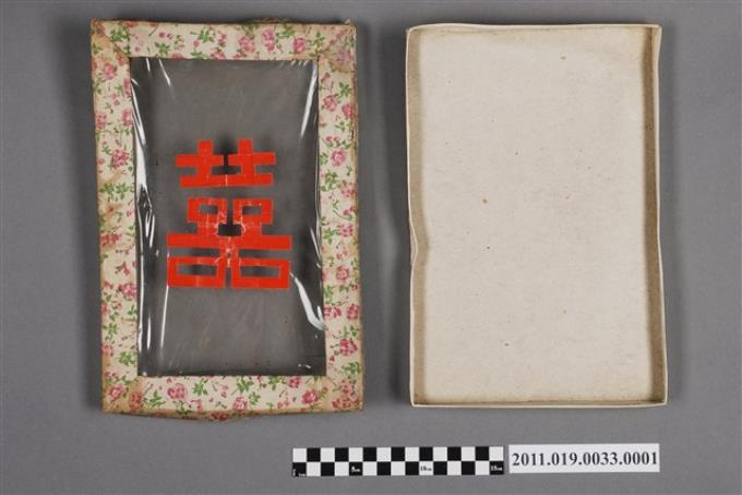 含舊臺幣壹百圓與紅布1件的紙製聘禮盒之包裝紙盒