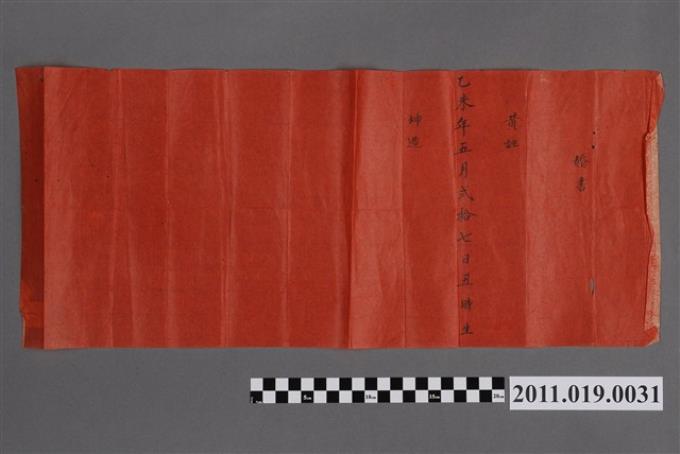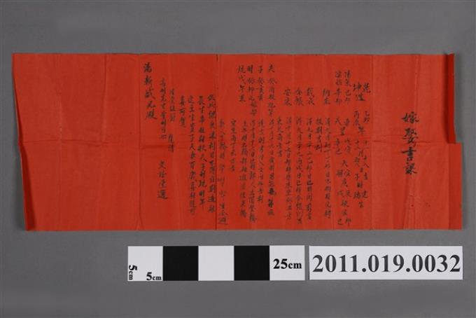 含舊臺幣壹百圓與紅布1件的紙製聘禮盒之紅布