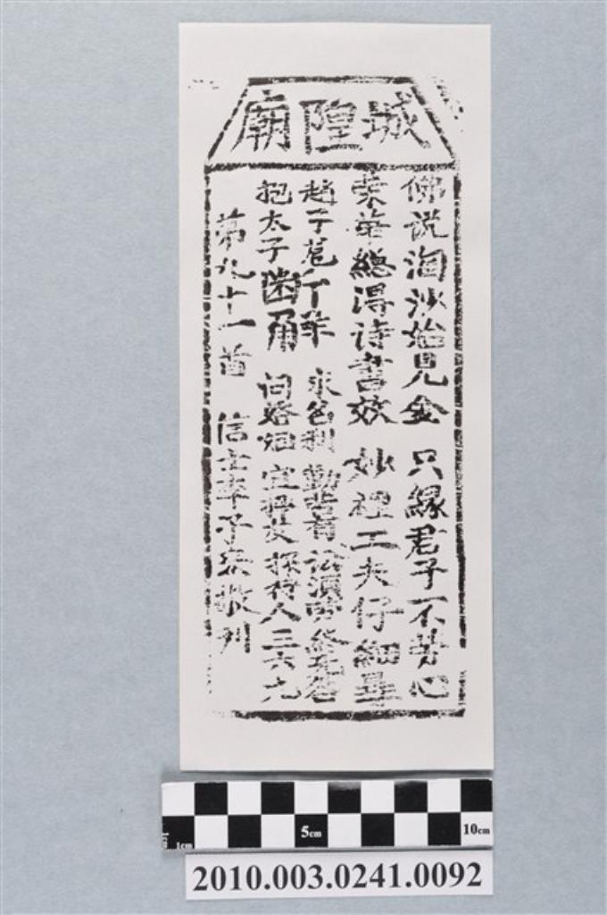 宜蘭城隍廟第九十二首籤詩