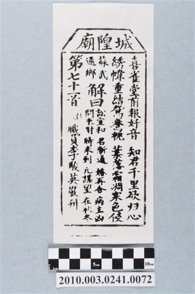 宜蘭城隍廟第七十二首籤詩