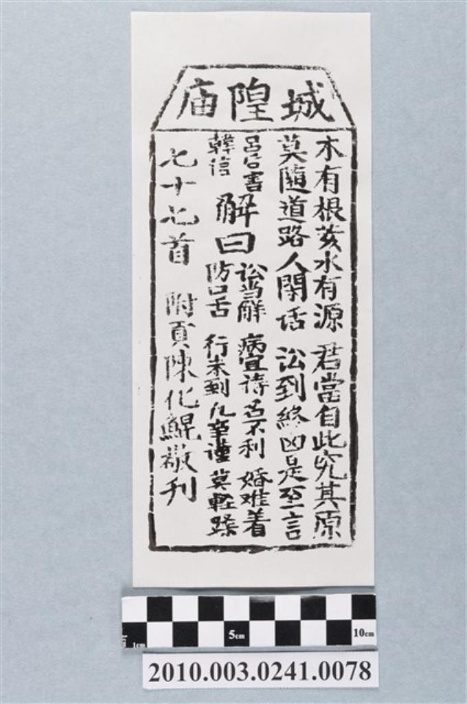 宜蘭城隍廟第七十六首籤詩