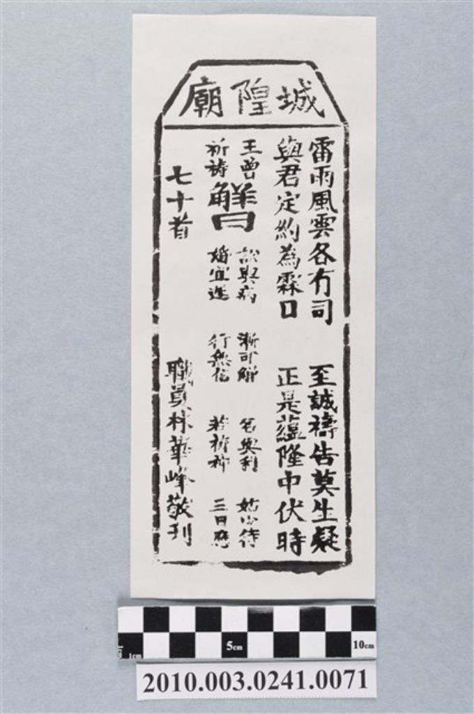 宜蘭城隍廟第七十一首籤詩