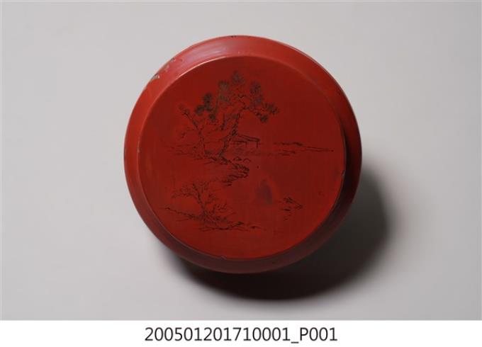 珠漆描金山水人物𣛮籃之上蓋