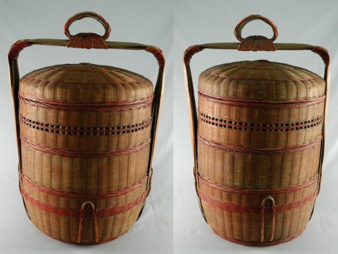 臺南公廨竹編3層𣛮籃1對