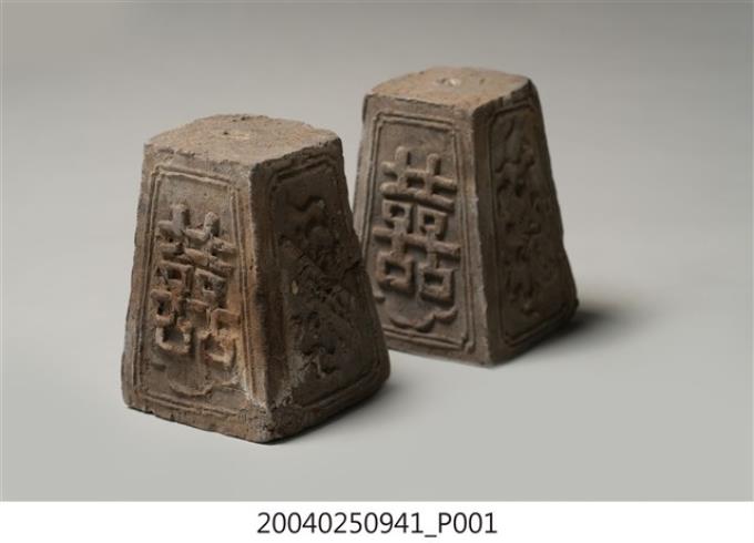 陶製素燒囍字燭臺組
