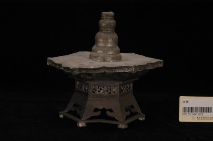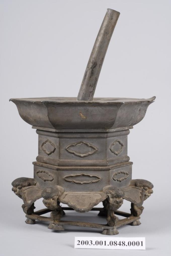錫製六角虎首足燭臺