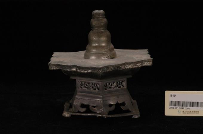 錫製六角菱花口燭臺
