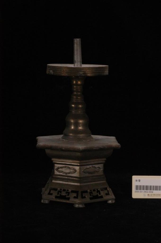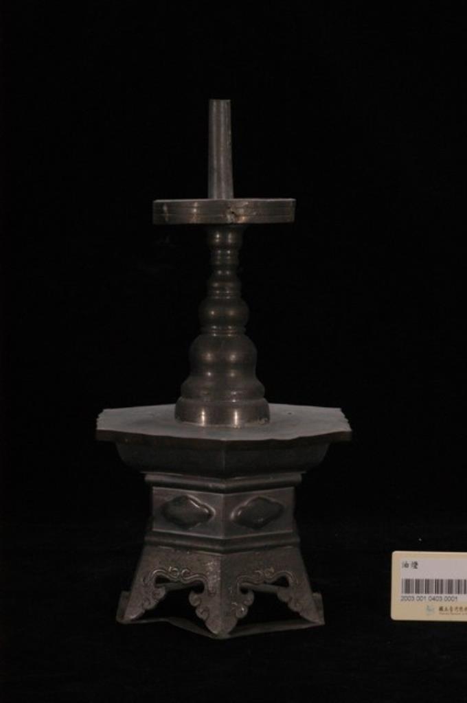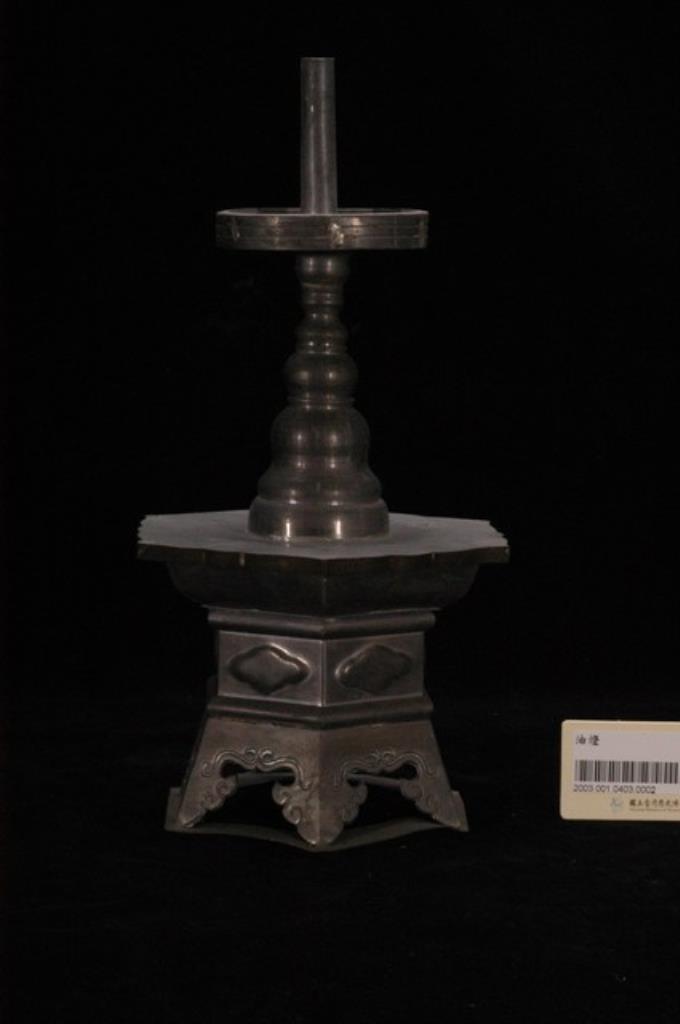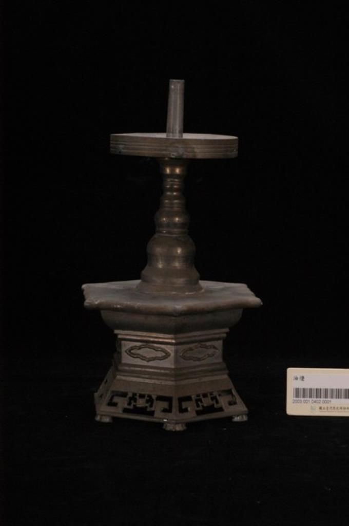 錫製六角座立柱式燭臺