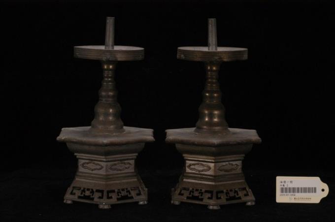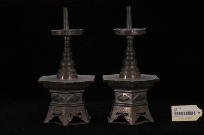 錫製六角座立柱式燭臺組