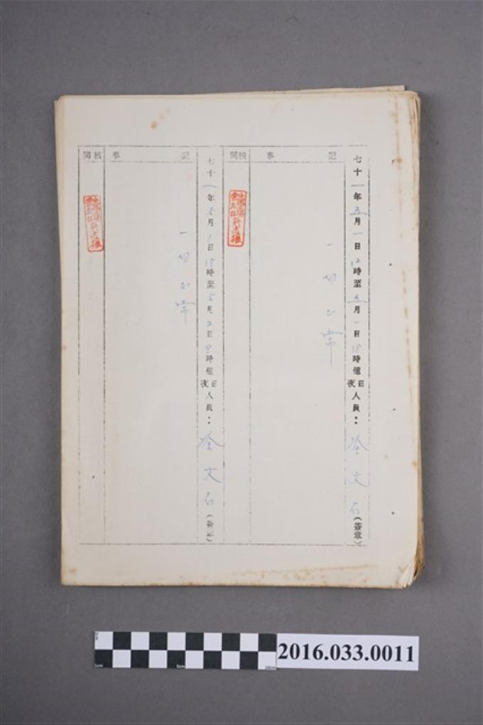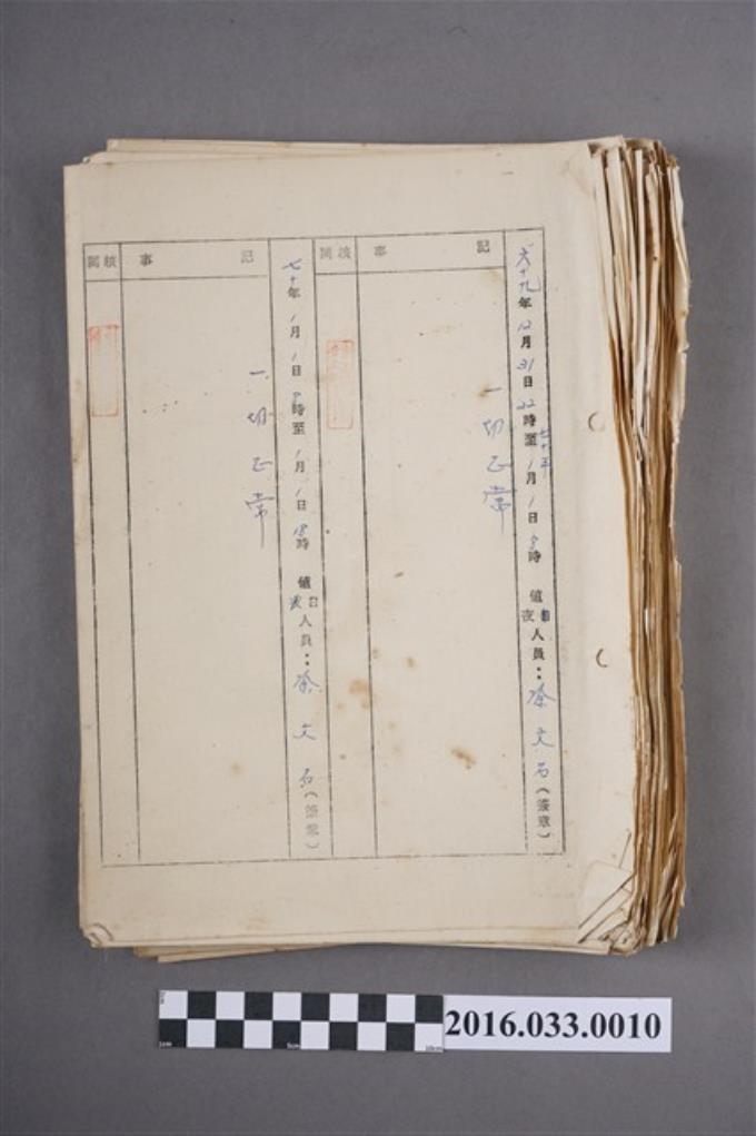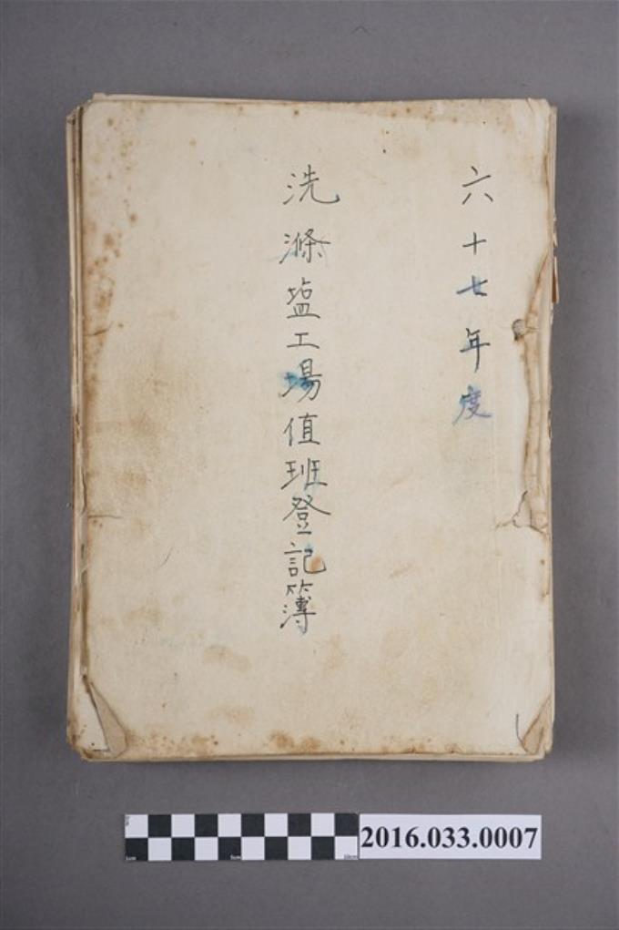 民國66與67年度北門洗滌鹽工廠值班登記簿