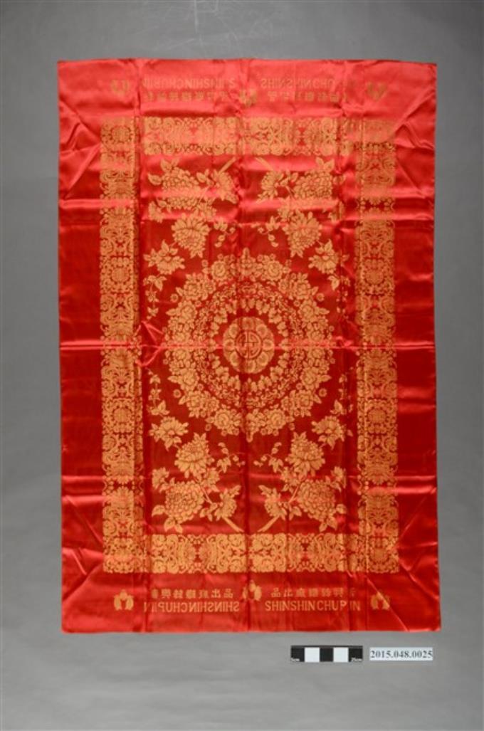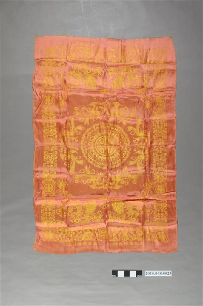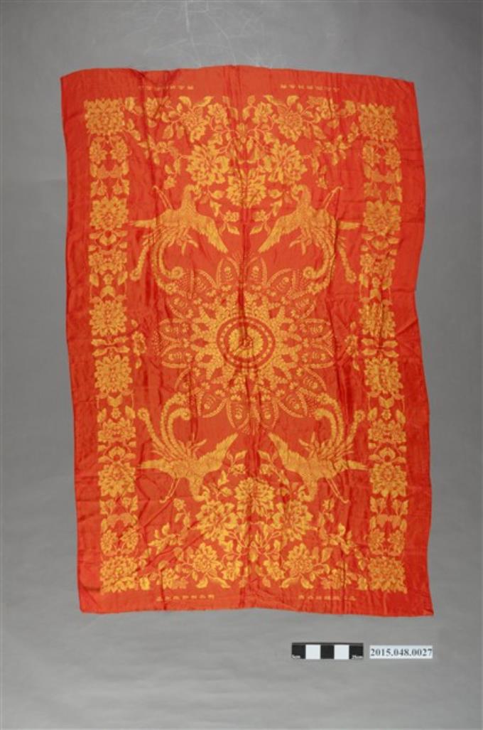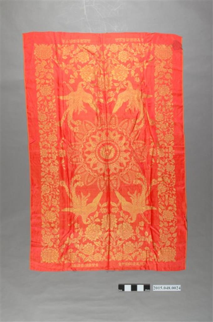 紅底金緹花鳳凰牡丹紋喜幛