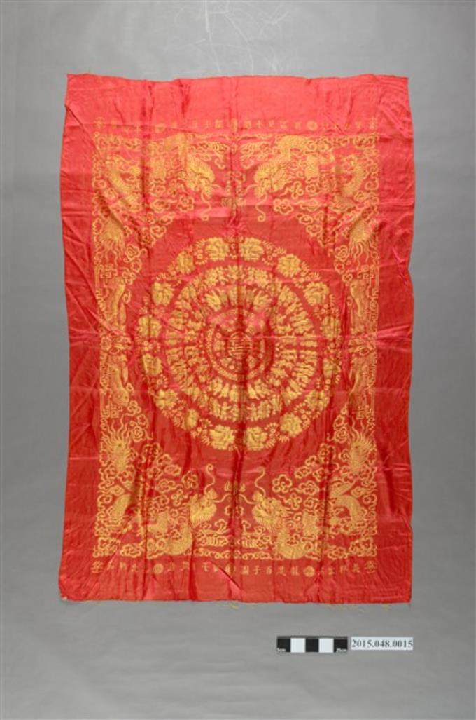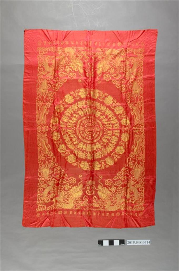 紅底金緹花龍鳳百子圖喜幛