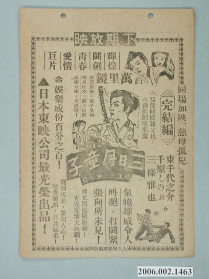 《三日月童子》電影本事第二部《飛馬征空》;《將軍春夢》電影本事