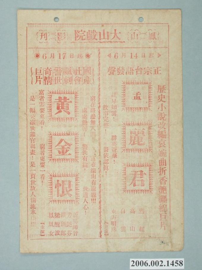 大星電影股份有限公司榮譽出版《碧血黃花》電影宣傳單