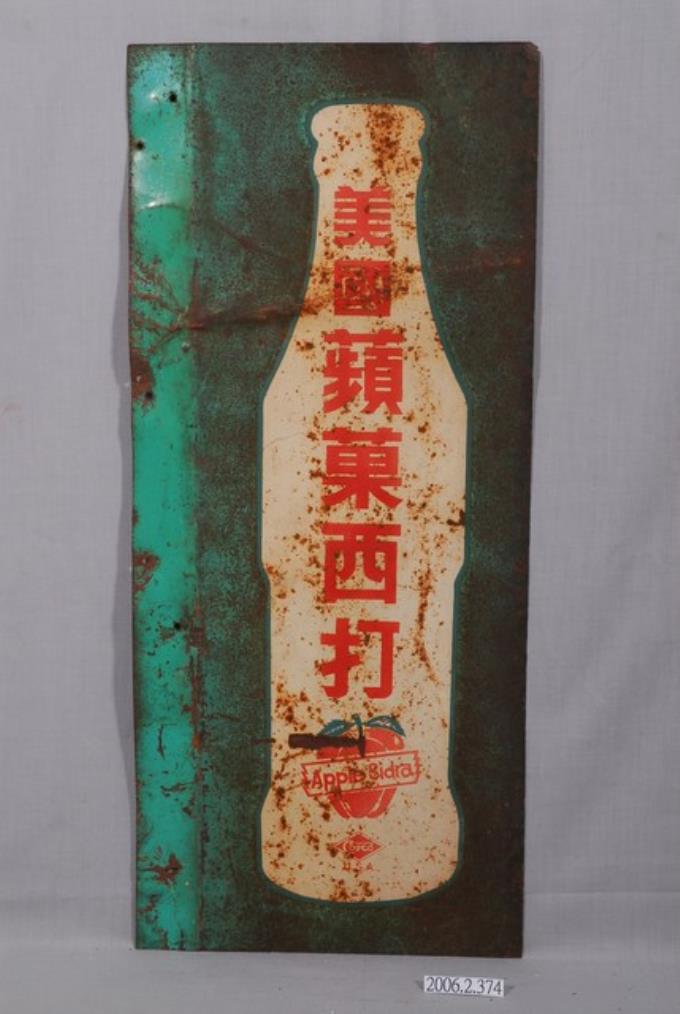 大西洋飲料公司製美國蘋果西打雙面廣告鐵牌