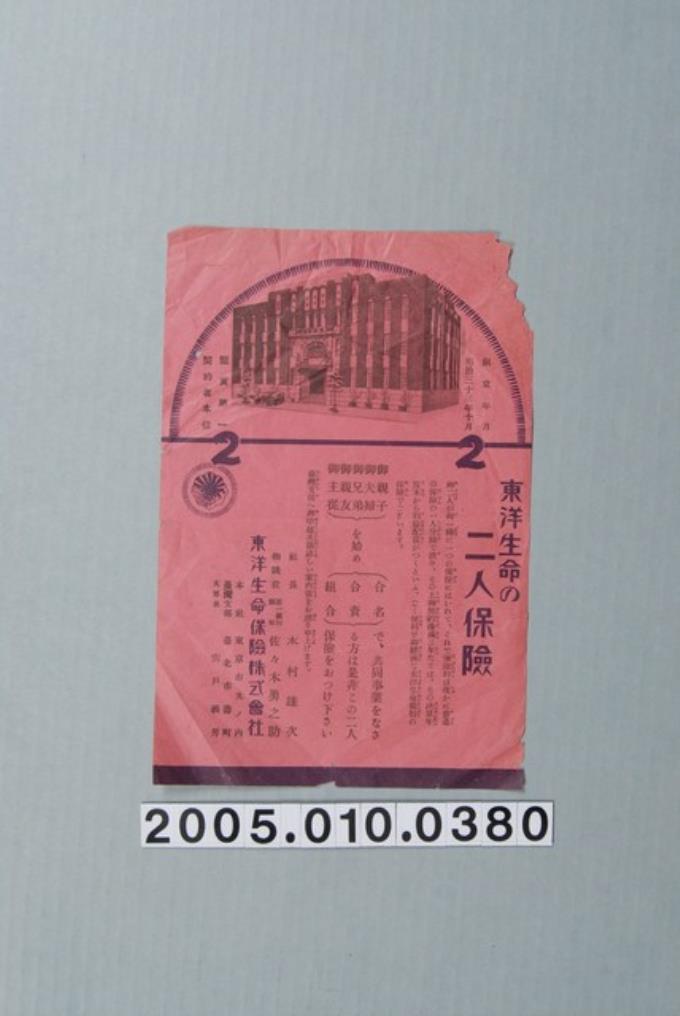 東洋生命保險株式會社二人生命保險宣傳單