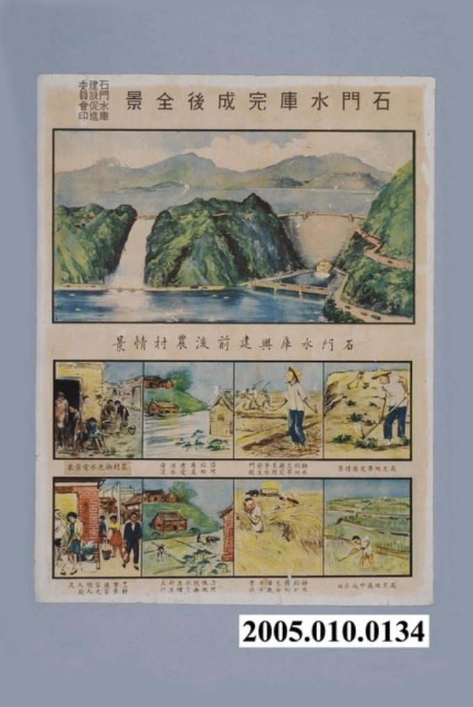 石門水庫建設促進委員會印製石門水庫完成後全景海報