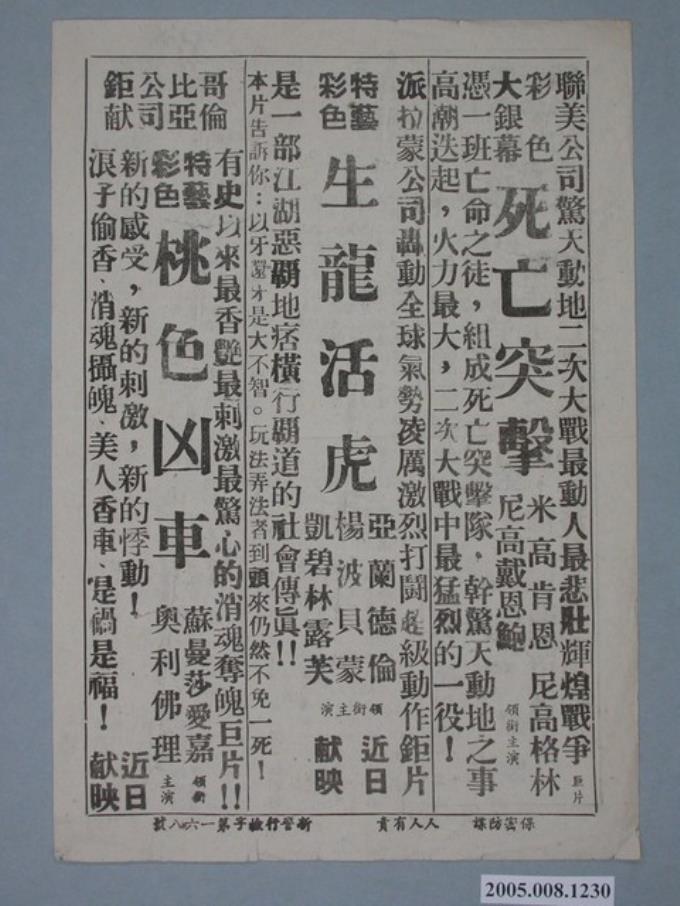 《死亡突擊》電影廣告單