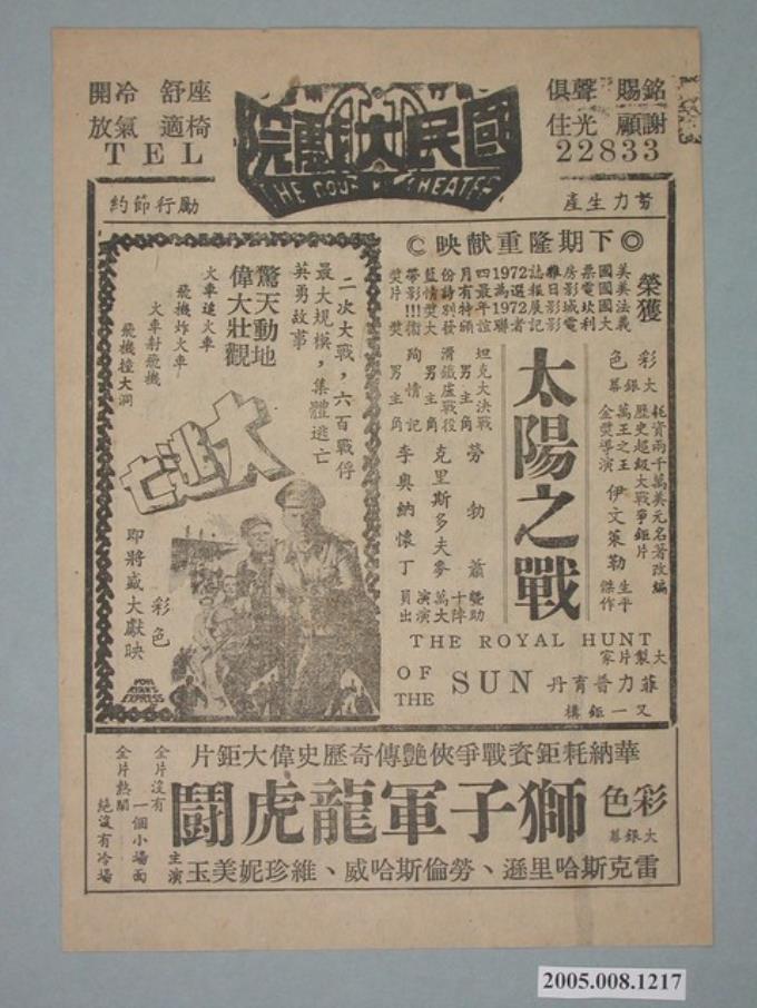《太陽之戰》電影廣告單