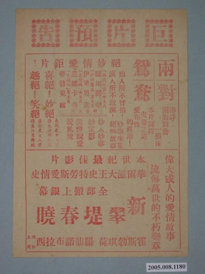 新世界戲院發行《午夜三點零三分》電影本事