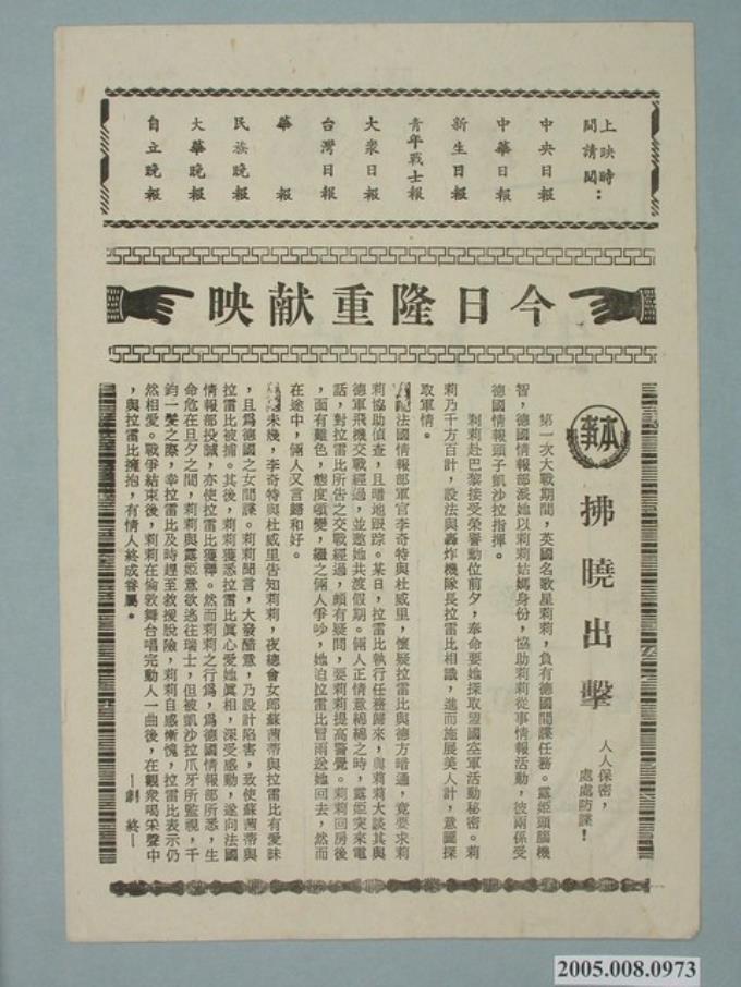 東南亞戲院發行《拂曉出擊》電影本事