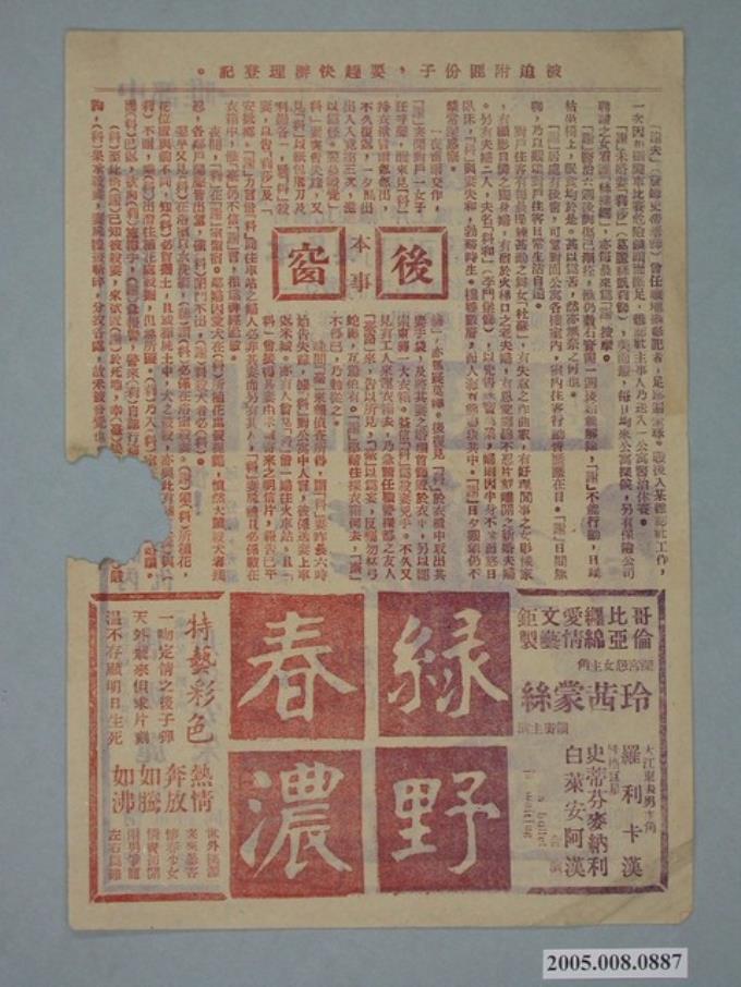 成功戲院發行《後窗》電影本事
