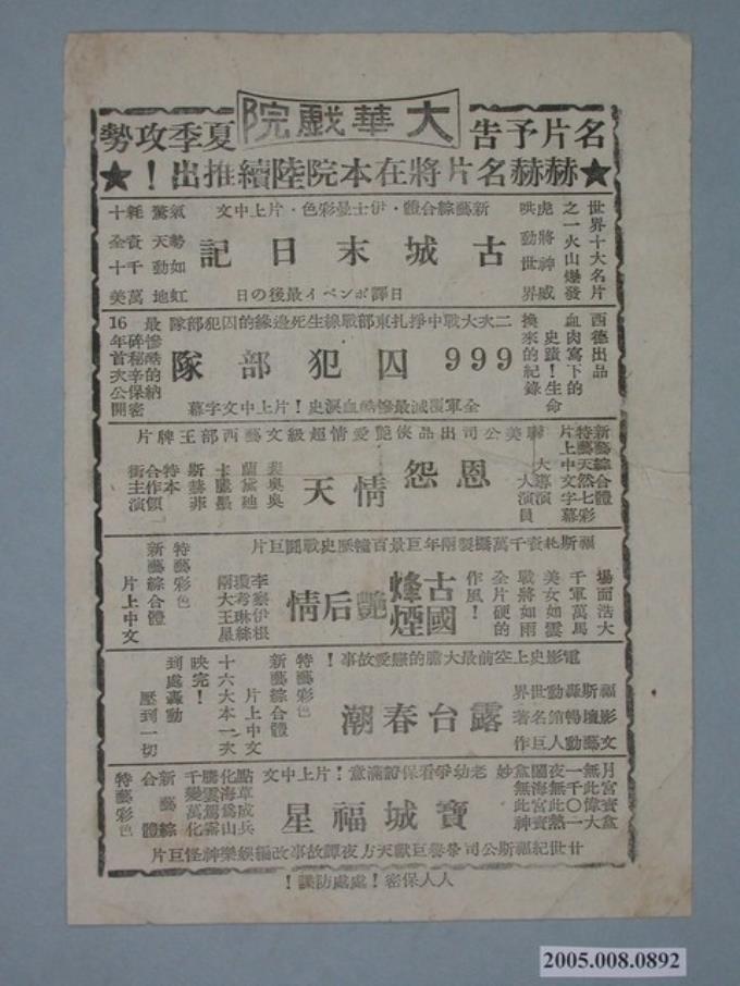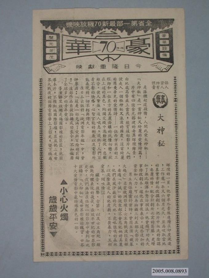 豪華戲院發行《大神秘》電影本事