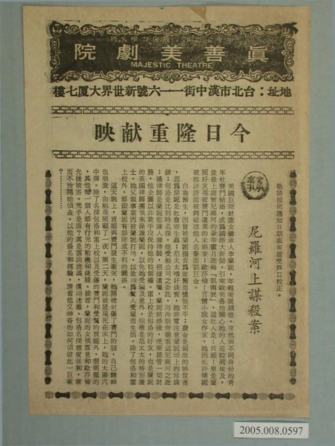 真善美劇院發行《尼羅河上謀殺案》電影本事