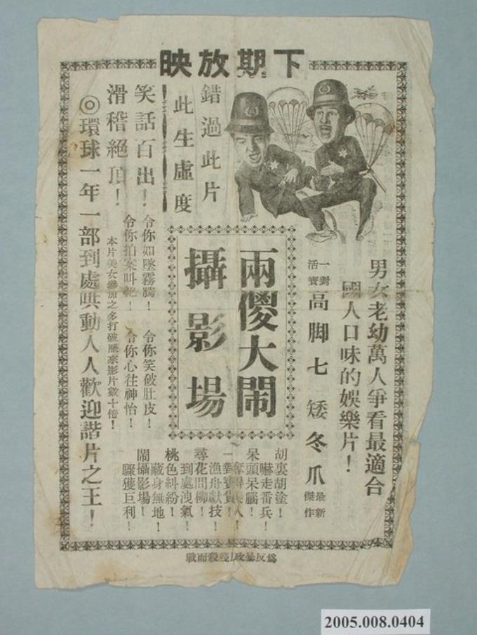 《兩傻大鬧攝影場》電影廣告單