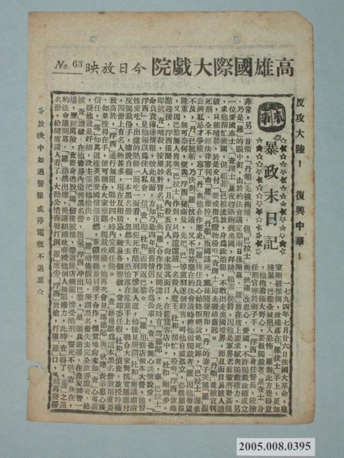 國際大戲院發行《暴政末日記》電影本事