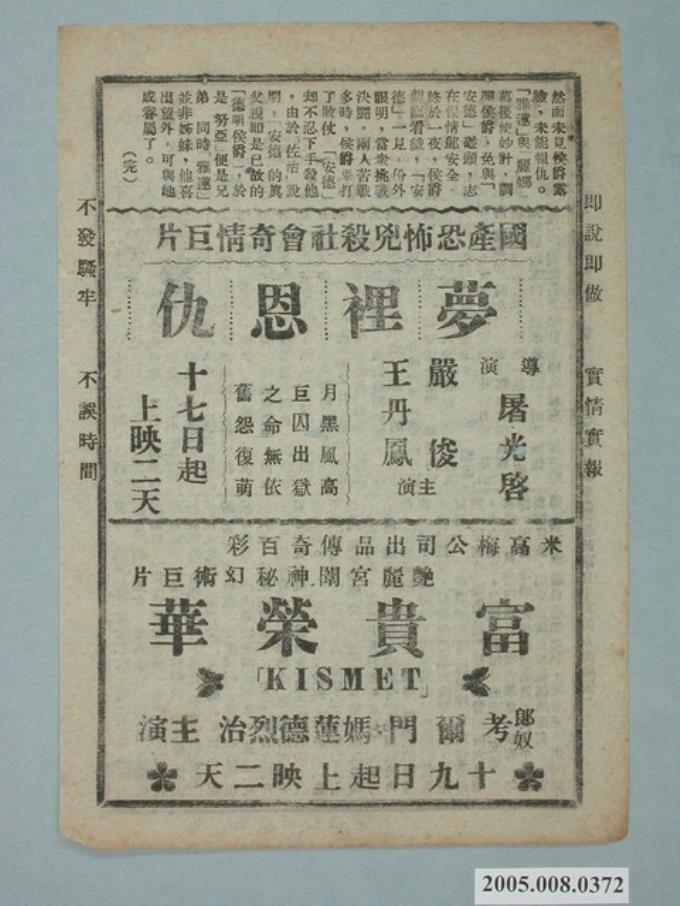 《夢裡恩仇》電影廣告單