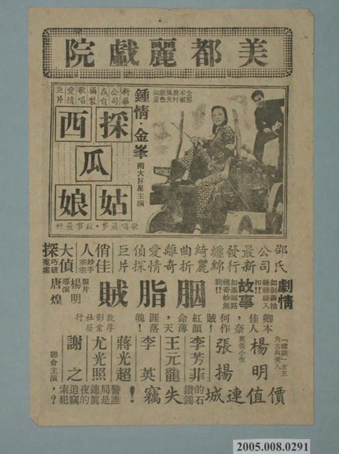 《採西瓜姑娘》及《胭脂贼》電影廣告單