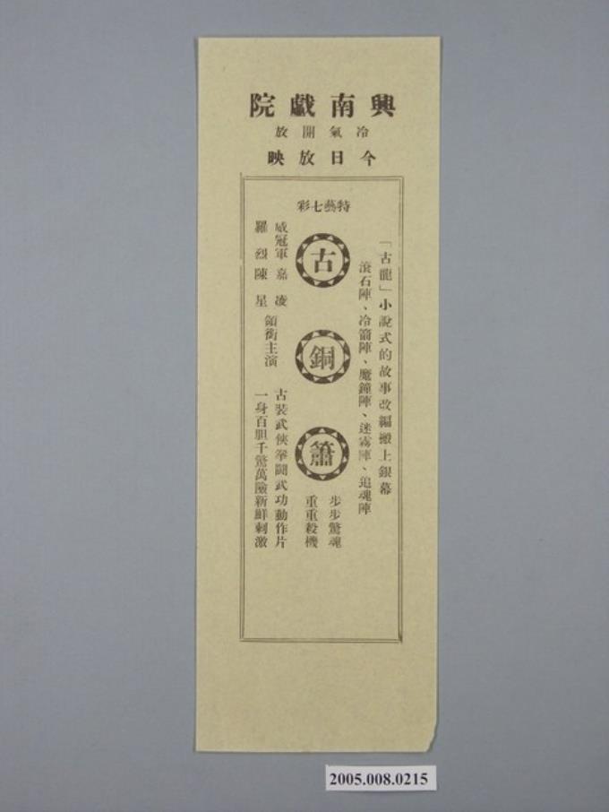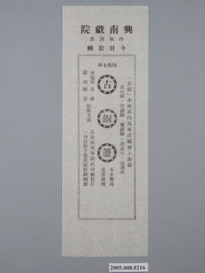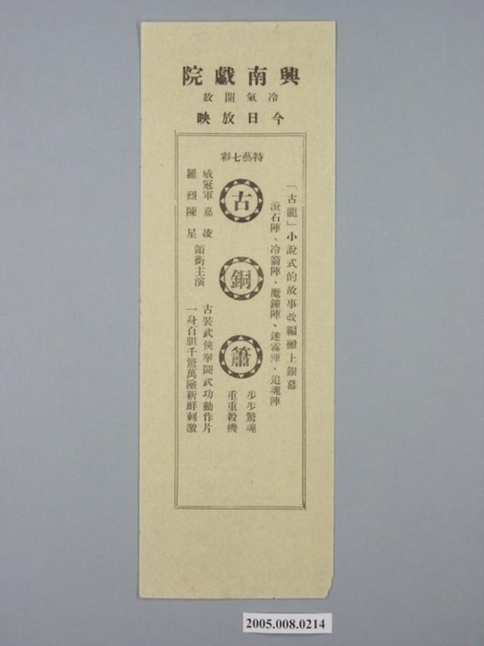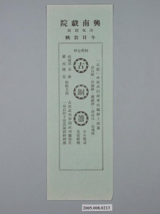 興南戲院《古銅簫》(綠)電影廣告單