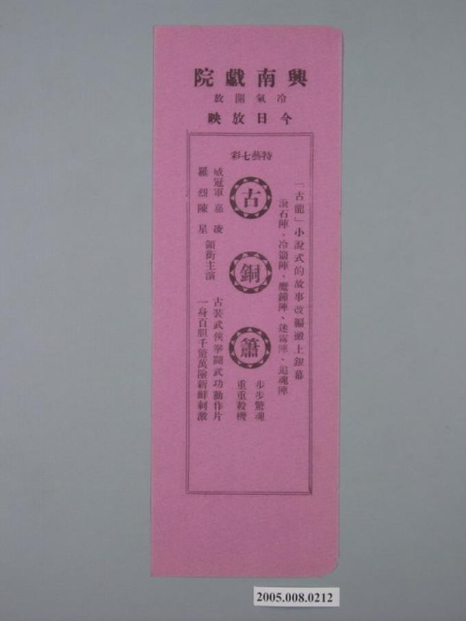 興南戲院《古銅簫》(紅)電影廣告單