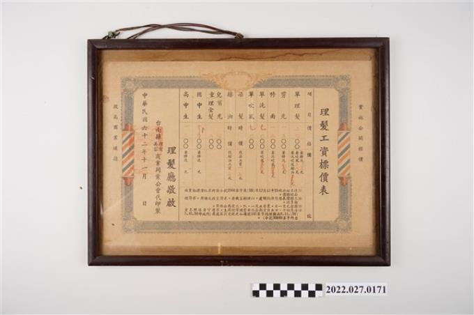 臺南縣理髮美容商業同業公會製理髮工資標價表
