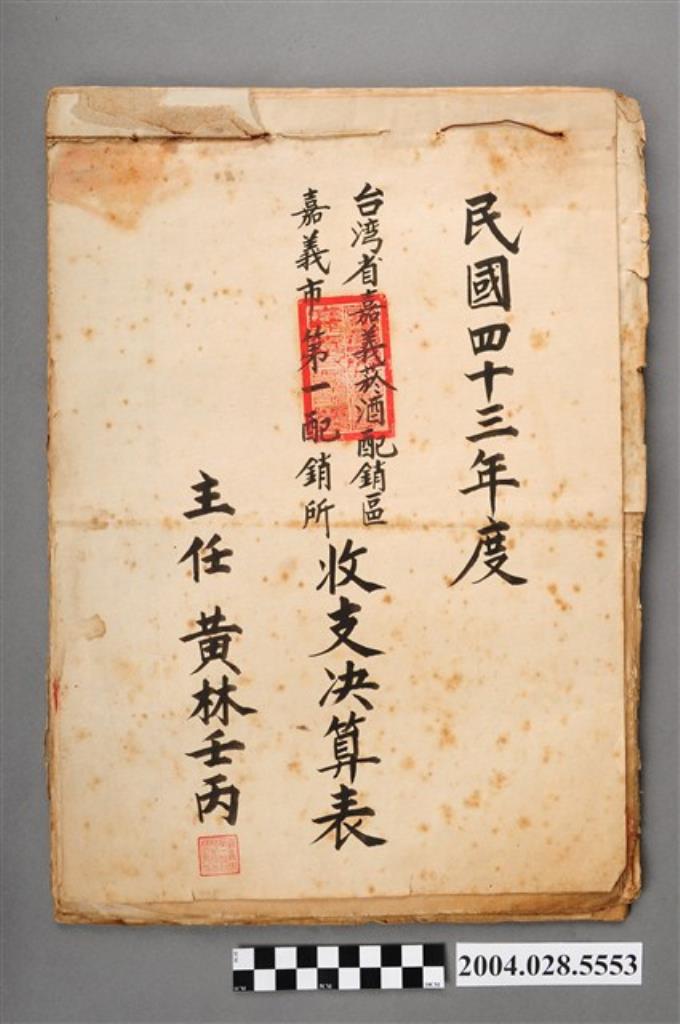民國43年度臺灣省嘉義菸酒配銷區嘉義市第一配銷所收支決算表