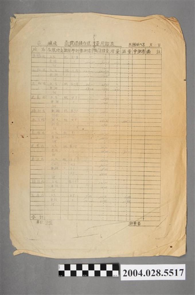 民國38年永建煤礦存煤測量月報表