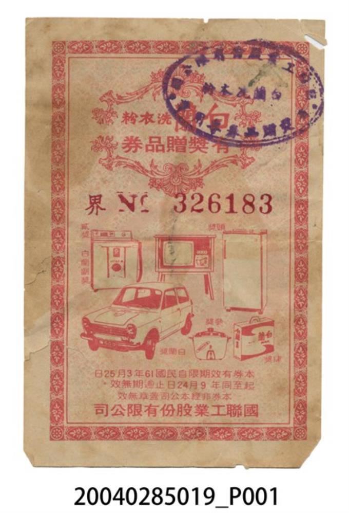白蘭洗衣粉有獎贈品券