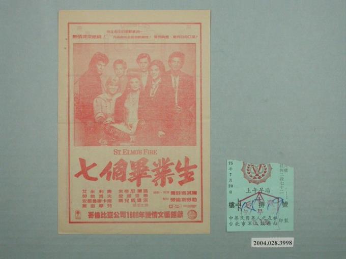 皇后戲院發行《七個畢業生》電影本事與電影票