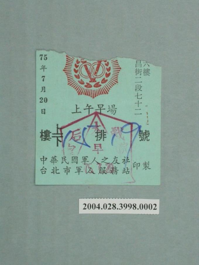 皇后戲院軍人電影票