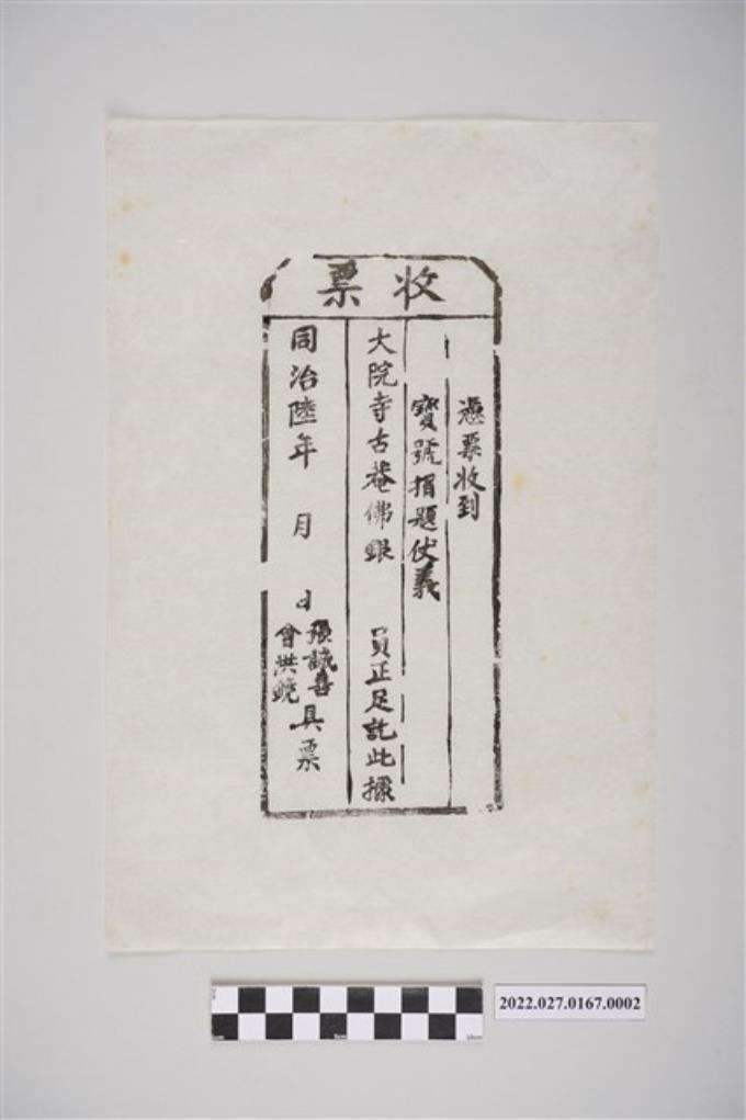 木製憑票收到寶號捐題仗義拓印工具與拓印紙