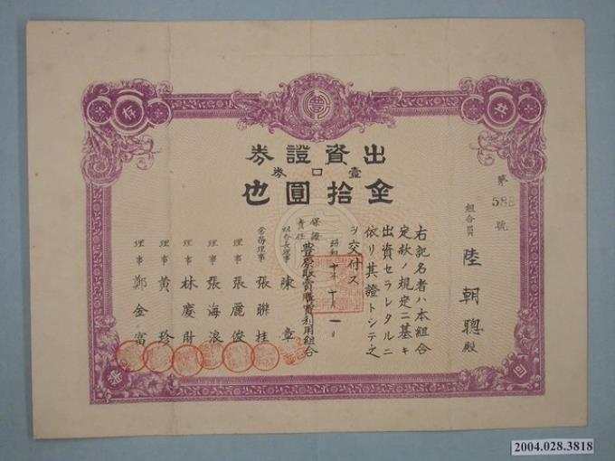 陸朝聰持有豐原販賣購買利用組合出資證券